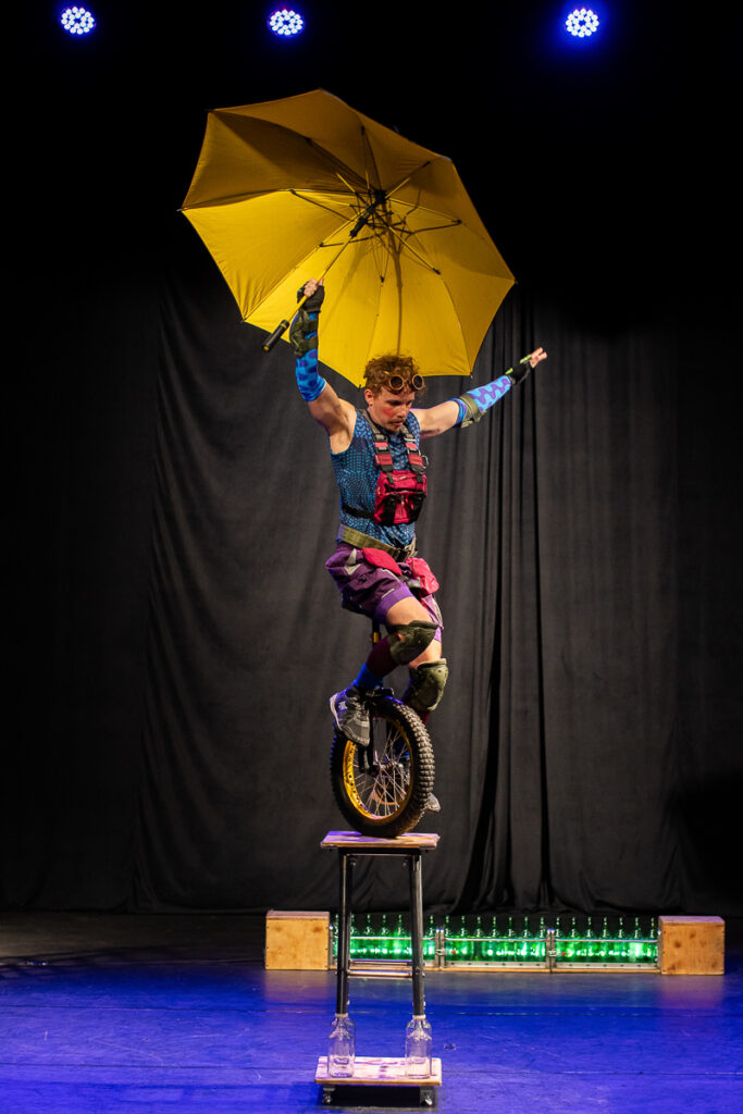 Com um número circense que combina garrafas de vidro, monociclo, bicicleta acrobática e cenas que desafiam a gravidade, Guilherme Torres revela a maturidade de sua trajetória artística no equilibrismo, destacando-se como um dos nomes promissores dessa arte no Brasil.