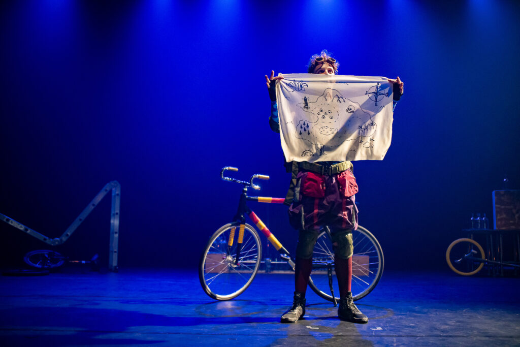 Combinando garrafas de vidro, monociclo, bicicleta acrobática e cenas que desafiam a gravidade, o artista apresenta um número circense em que o público é convidado a acompanhar a jornada de um viajante sonhador que embarca em sua maior aventura: chegar ao pico de uma grande montanha e viver o momento sublime da conquista e superação.